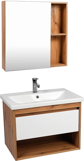 Тумба под раковину Бостон 80 1 ящик подвесная белая/дуб вотан