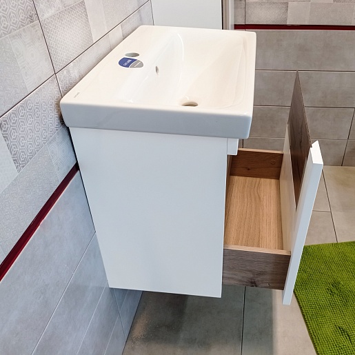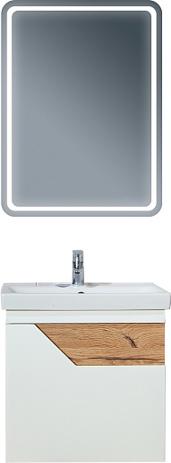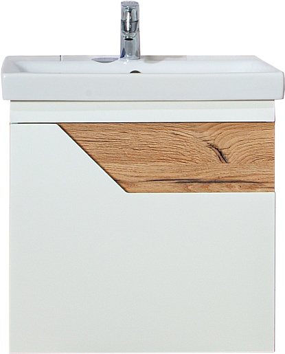 Подвесная тумба с раковиной Бриклаер Брайтон 60 белая матовая/дуб кера - арт. 4627125415784 / P-UM-MOD60SL/1.