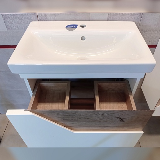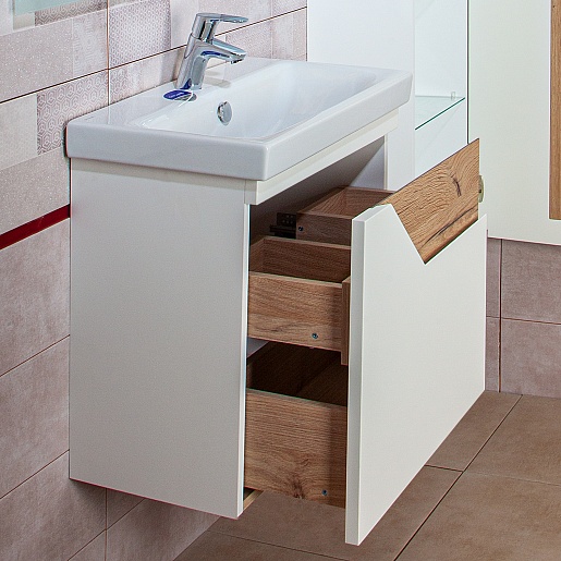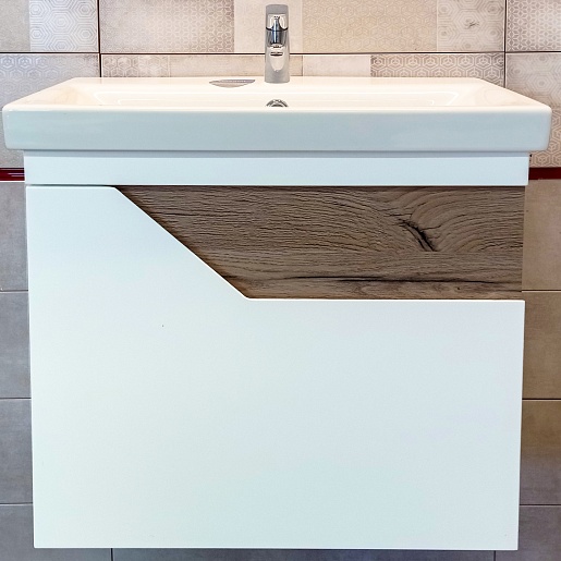 Тумба под раковину Брайтон 60 белая матовая/дуб кера
