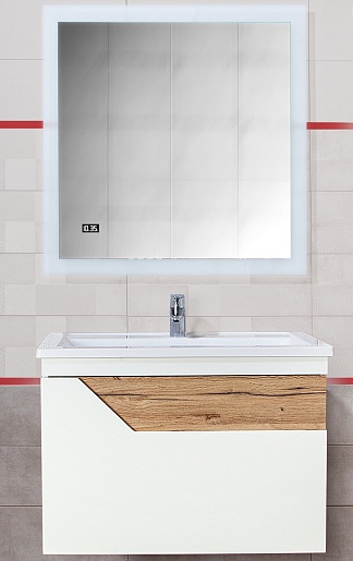 Тумба под раковину Брайтон 70 белая матовая/дуб кера