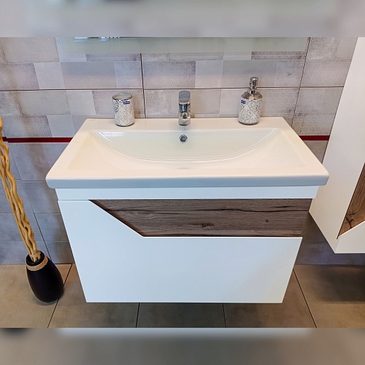 Подвесная тумба с раковиной Бриклаер Брайтон 70 белая матовая/дуб кера - арт. 4627125415807 / S-UM-COM70/1-w.