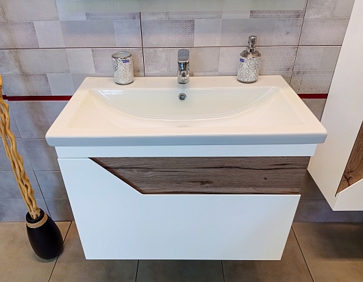Тумба под раковину Брайтон 80 белая матовая/дуб кера