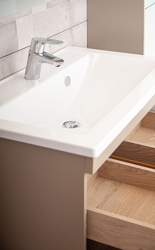 Подвесная тумба с раковиной Бриклаер Брайтон 80 глиняный серый - арт. 4627125415838 / 4660105230717.