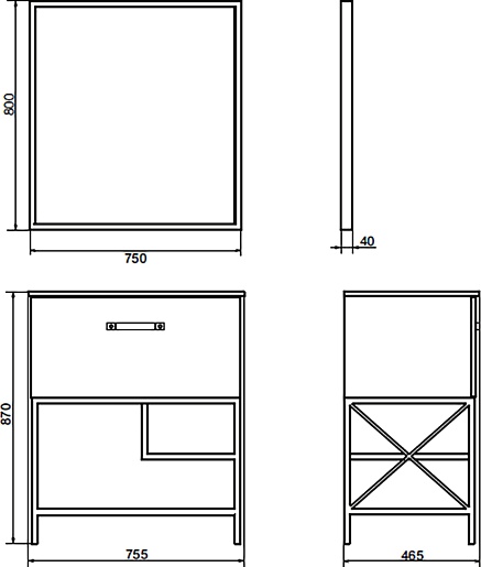 - Размер (ШxВxГ): 750x800x40 мм.