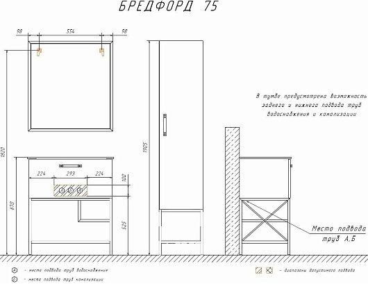 В комплекте: тумба, раковина, ножки.