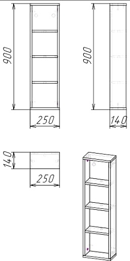 - Размер (ШxВxГ): 25x90x14 см.