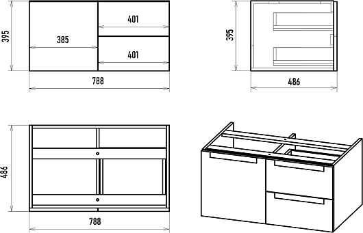 - 2 выдвижных ящика, 1 распашная дверка.