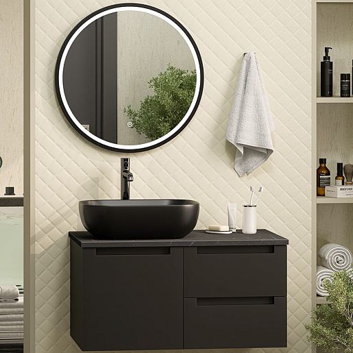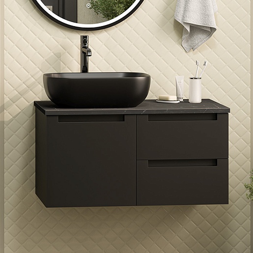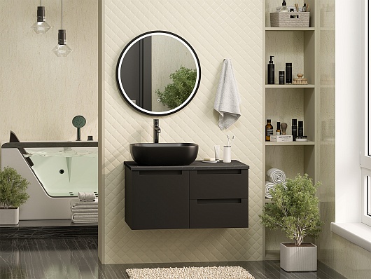 Тумба под раковину Cargo 80 подвесная черная матовая