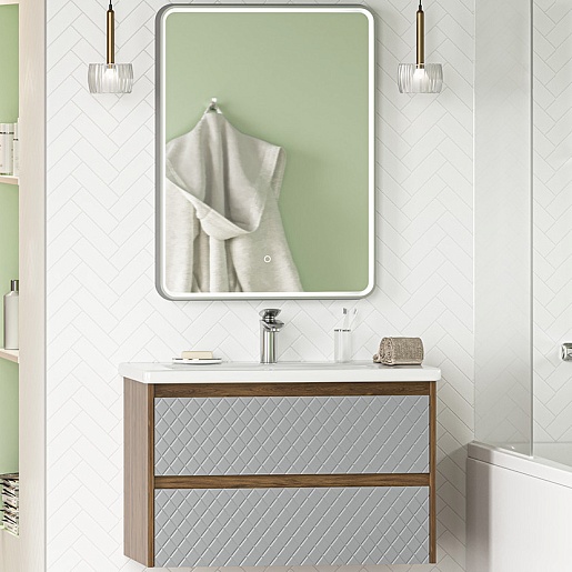 Brevita Мебель для ванной Chester 80 подвесная серая/дуб чарльстон темно-коричневый