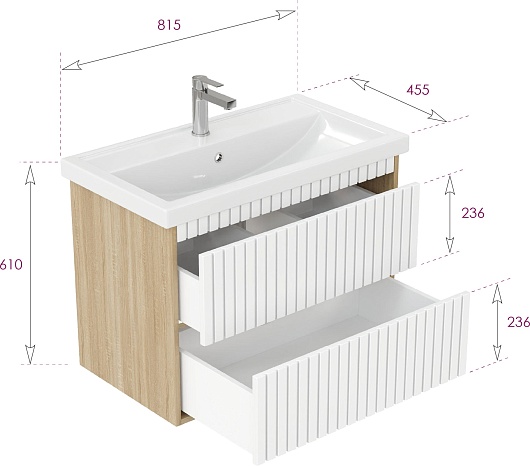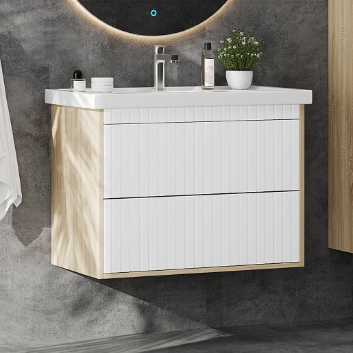 Тумба под раковину Дайлер 80 подвесная белая/дуб сонома