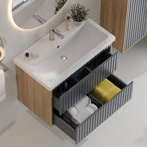 Onika Мебель для ванной Дайлер 80 подвесная графит/дуб сонома