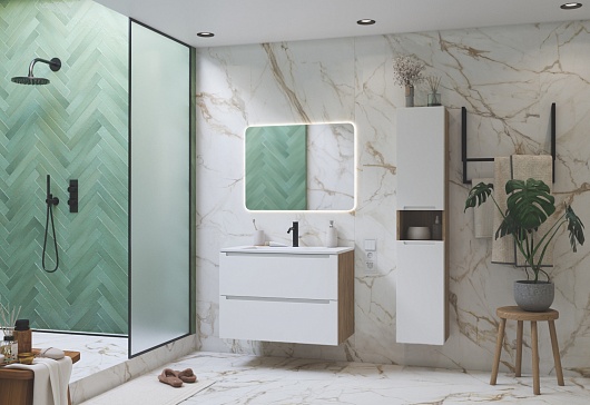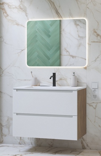 Зов Мебель для ванной Дион 60 подвесная матовая белая/дуб