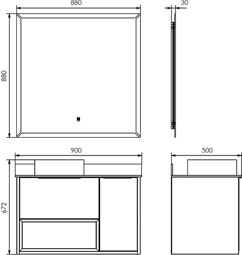 Зеркало Джанкой 90 с подогревом и бесконтактным выключателем