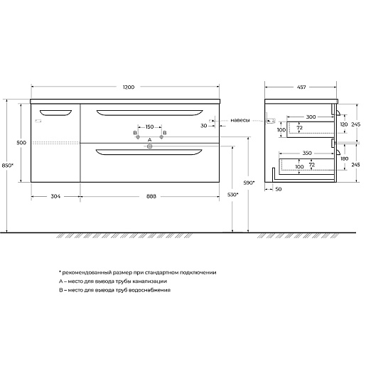 Система хранения: два выдвижных ящика, распашная дверца слева.