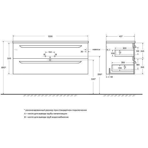 Мебельная раковина Duet 120 R CZR-8095-120-R белая глянцевая