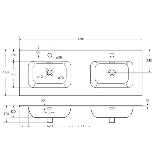 Мебельная раковина Duet 120 CZR-8095-120-2 белая глянцевая