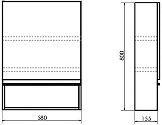 - Размер (ШxВxГ): 580x800x155 мм.