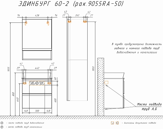 В комплекте: тумба, столешница, раковина, зеркальный шкаф, крепеж.