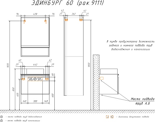 Подвесная тумба с раковиной Comforty Эдинбург 60 - арт. 00-00002782CF.