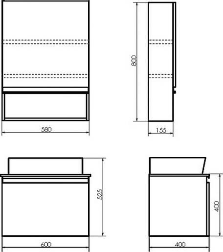 В комплекте: тумба, столешница, раковина, зеркальный шкаф, крепеж.