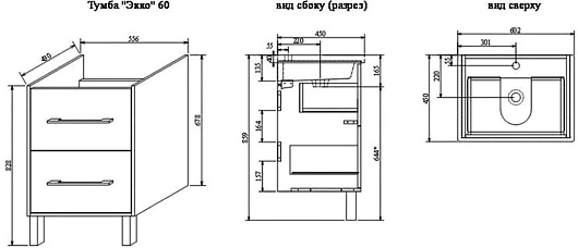 Тумба с раковиной Sanflor Экко 60 - арт. С23187 / S-UM-COM60/1-w.