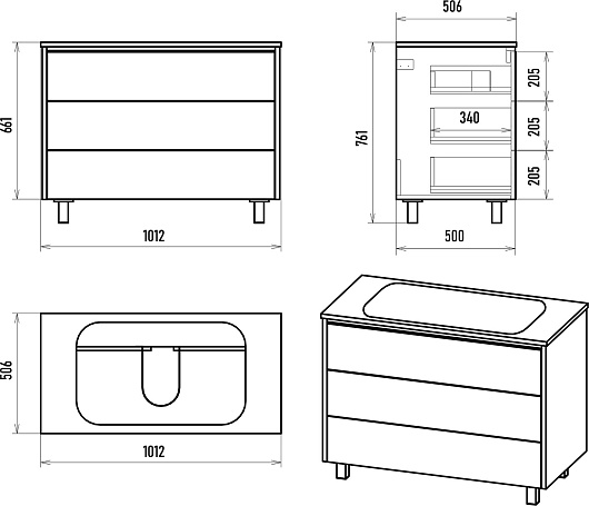 Комплектация: тумба, раковина, зеркало, ножки, крепеж.