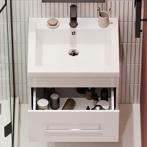 Водолей Мебель для ванной Элис 58 подвесная 1 ящик белая