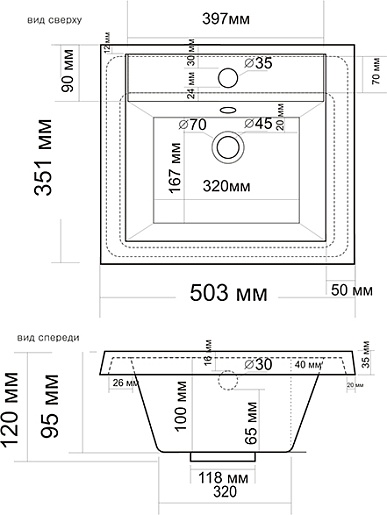 - Раковина из литьевого мрамора со слив-переливом.