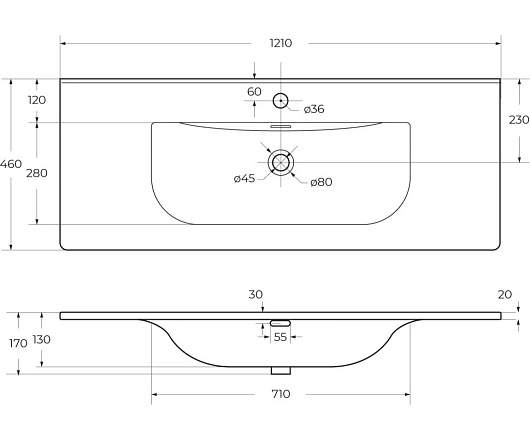 Мебельная раковина 121/46 BB-8099-120