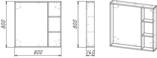 - 1 выдвижной ящик, 2 открытые полки (ниши).