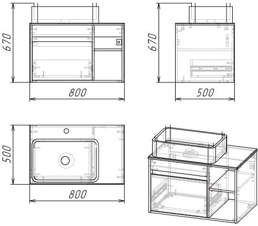 Подвесная тумба с раковиной Grossman Фалькон 80 - арт. 108005 / GR-3020.