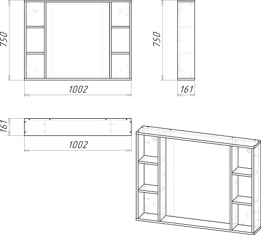 - Размер (ШxВxГ): 1002x750x161 мм.