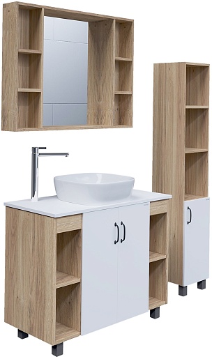 В комплекте: тумба, раковина, столешница, зеркало, комплект креплений, ножка (4 шт.).