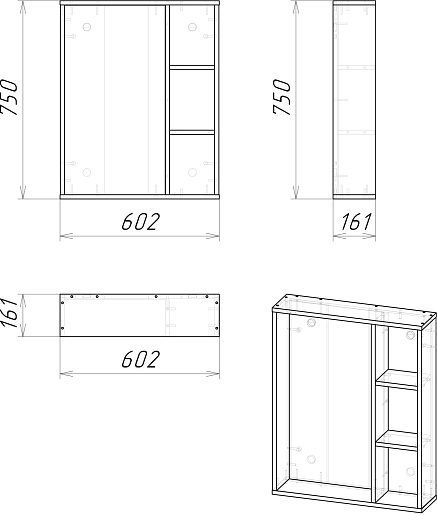 - 1 дверца, 2 открытые полки.