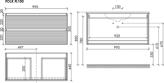 Тумба под раковину Folk 100 bianco