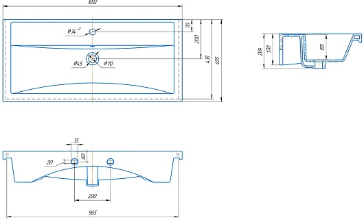 - Размер (ШxВxГ): 1000x700x160 мм.