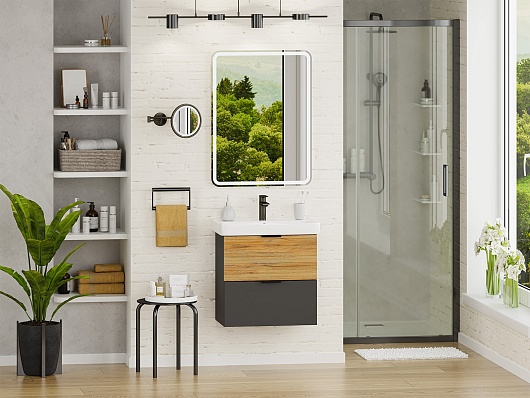 Misty Мебель для ванной Форест 60 подвесная дуб вотан/антрацит