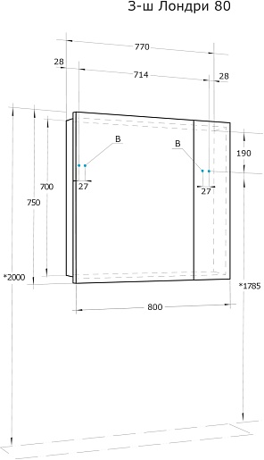 Зеркальный шкаф Лондри 80 белый
