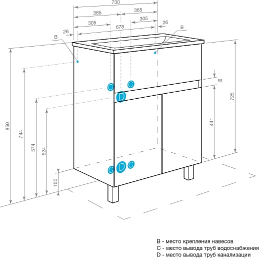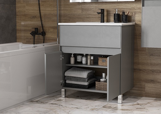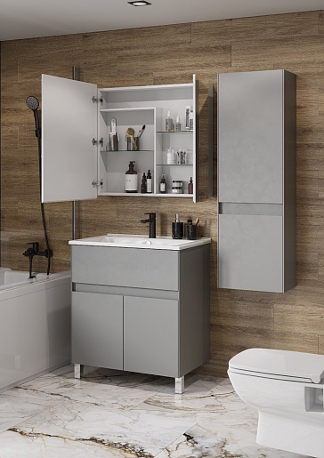 Комплектация: тумба, раковина, зеркальный шкаф, ножка (2 шт.), крепеж.