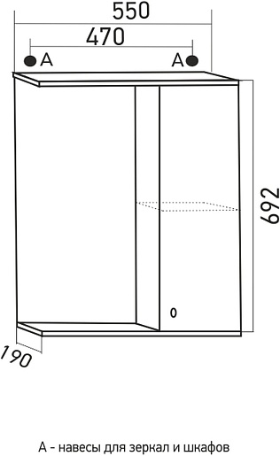 - 1 распашная дверца, 1 открытая полка.