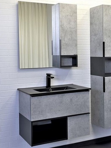 Зеркальный шкаф Франкфурт 75 бетон светлый/черный