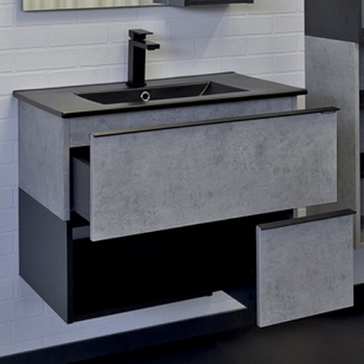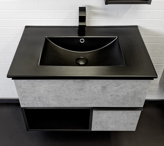 Тумба с раковиной Франкфурт 75 75EMB подвесная бетон светлый/черная