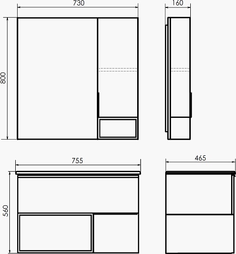 - Материал корпуса/фасада: ЛДСП / ЛДСП, зеркало.