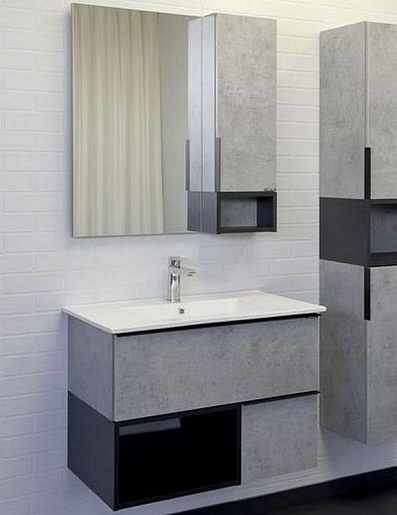 Зеркальный шкаф Франкфурт 75 бетон светлый/черный