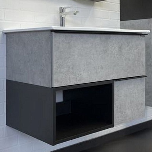 Тумба с раковиной Франкфурт 75 подвесная бетон светлый/черная