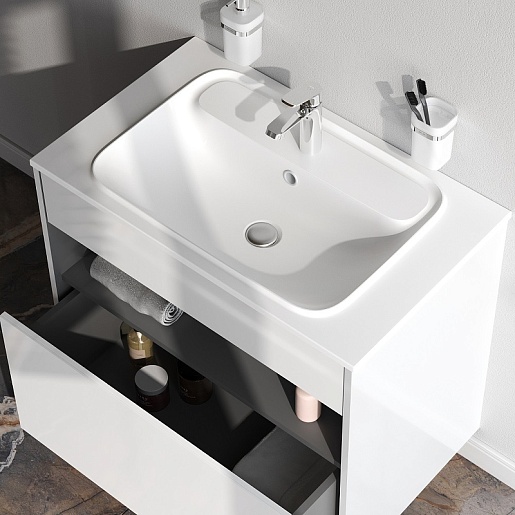 Тумба под раковину Func 80 подвесная белая глянцевая