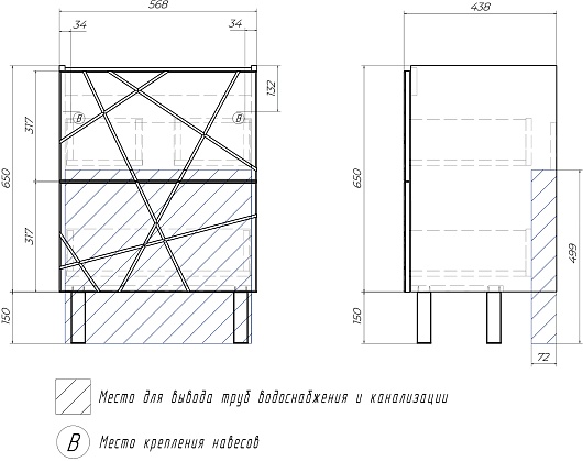 Тумба с раковиной Vigo Geometry 2-600 Como - арт. 015 бетон / S-UM-COM60/1-w / 058.