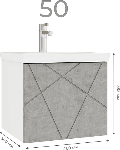 Тумба с раковиной Vigo Geometry 500-0-1 - арт. 032 бетон / S-UM-COM50/1-w.