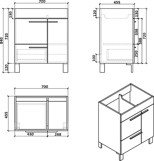 - 2 распашные дверцы, 1 выдвижной ящик.