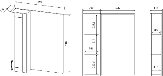 - Размер (ШxВxГ): 596 x 710 x 142 мм.